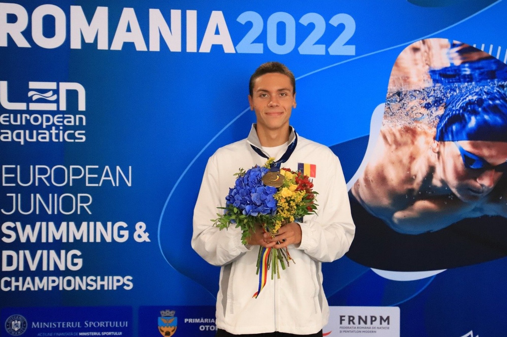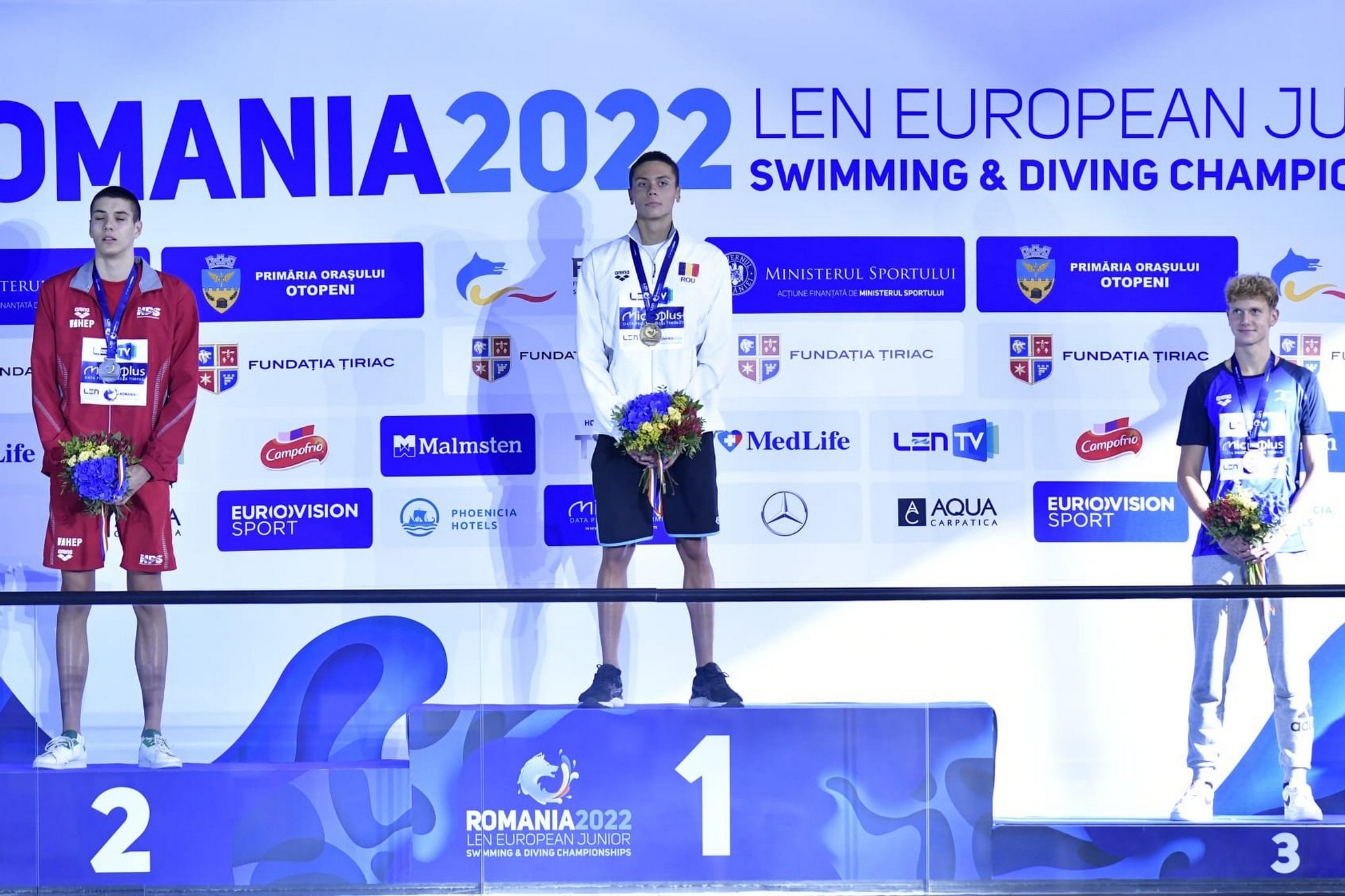 Imnul României a răsunat din nou în Complexul sportiv din Otopeni unde se desfășoară Campionatele Europene de înot rezervate juniorilor. David Popovici a urcat pentru a treia oară pe prima treaptă a podiumului, după ce a încheiat primul finala de la 50 m liber, deși nu este proba lui favorită, demonstrând încă o dată forma fantastică în care se află.