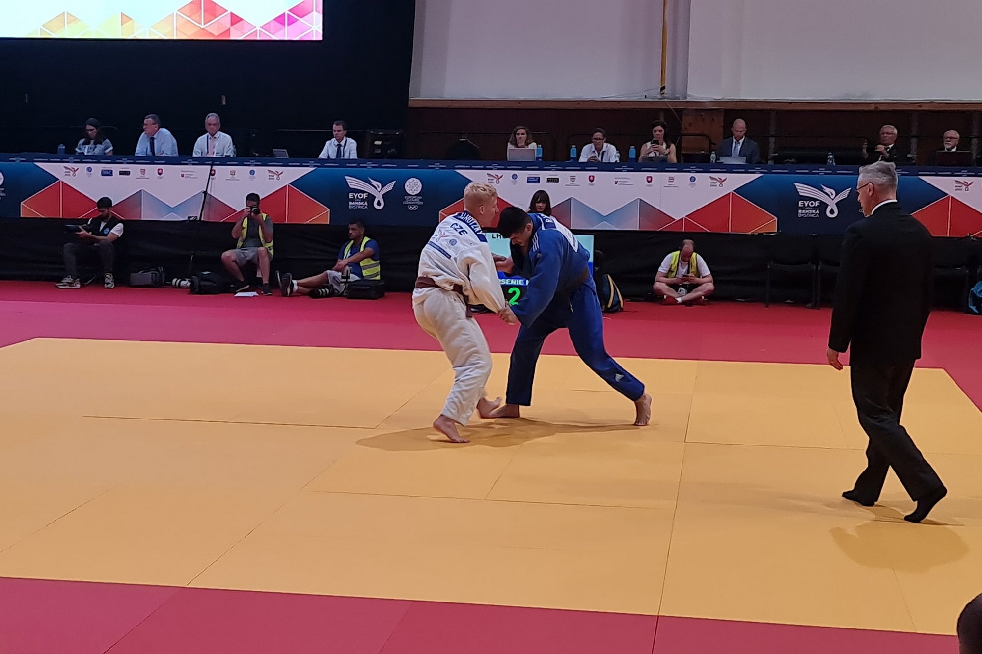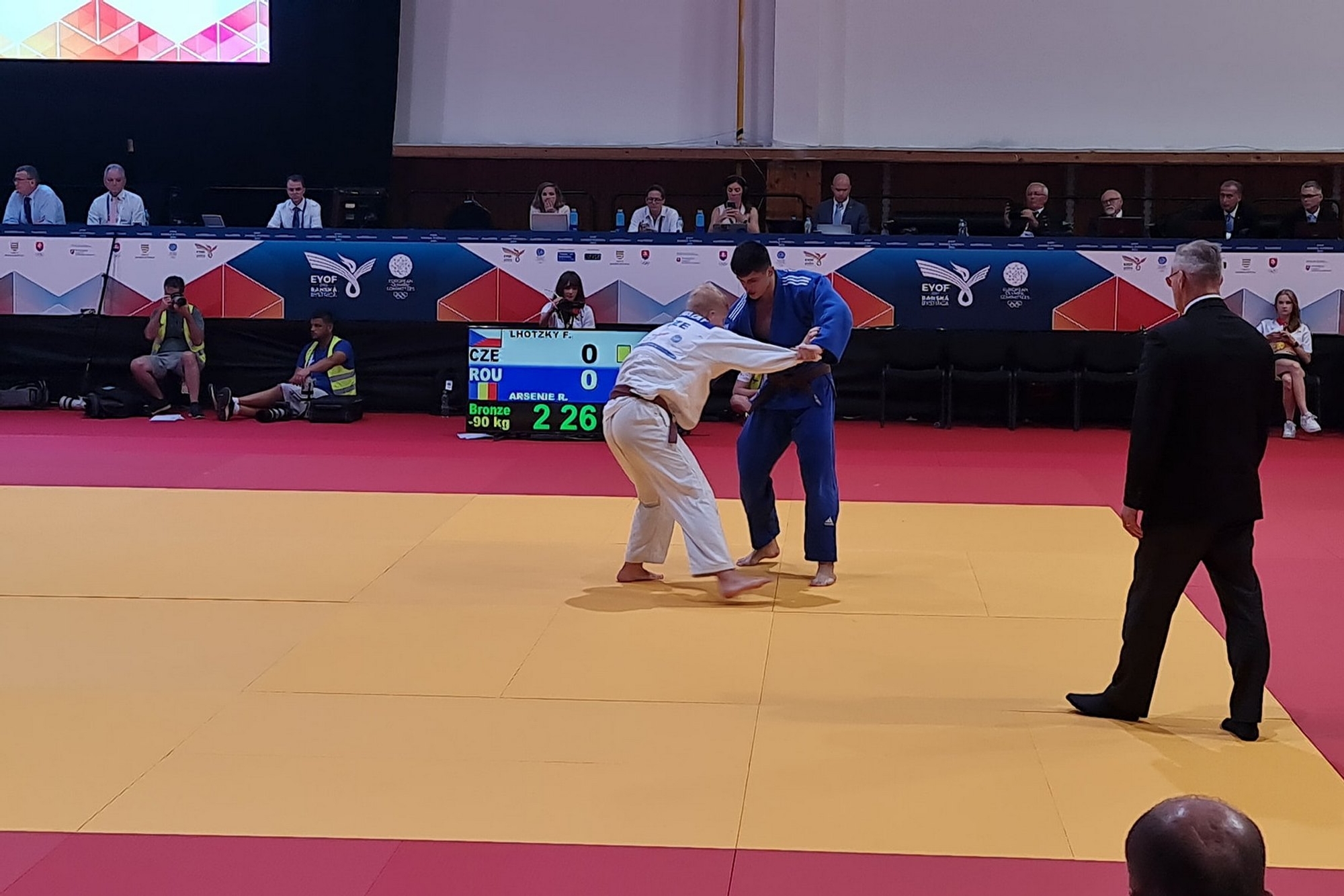 Judoka Rareș Ștefan Arsenie a reușit să urce pe podumul Festivalului Olimpic al Tineretului European - FOTE Banka Bystrica 2022, după ce a câștigat meciul pentru medalia de bronz, conta cehului Frantisek Lhotzk.