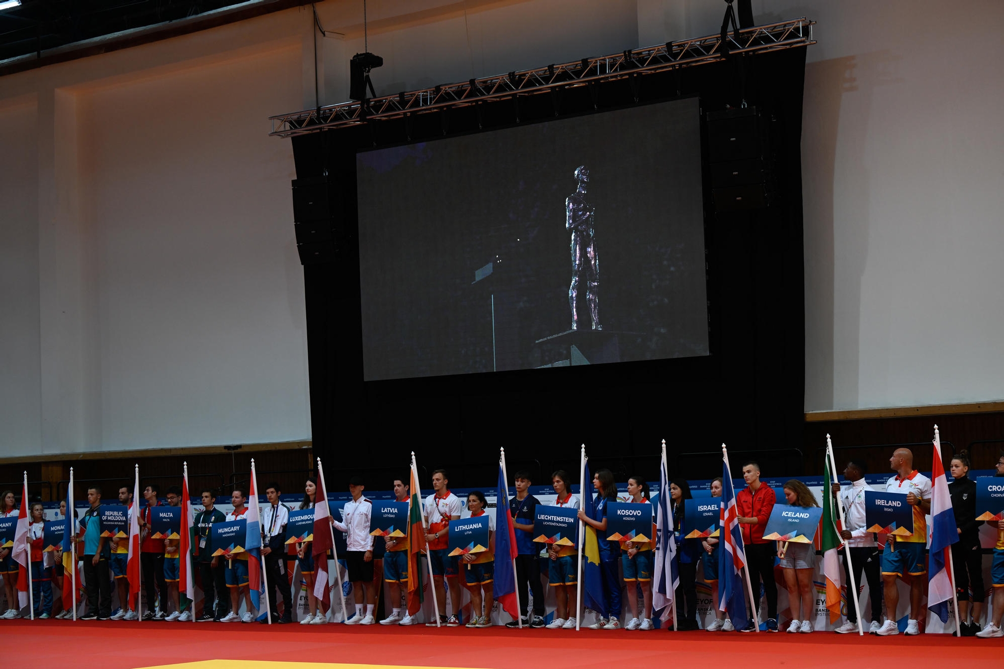 La tradiționala defilare a drapelelor țărilor participante la competiție, steagul României a fost purtat de judoka Bogdan Alexandru Petre, campion olimpic al tineretului european în limitele categoriei 100 kg.