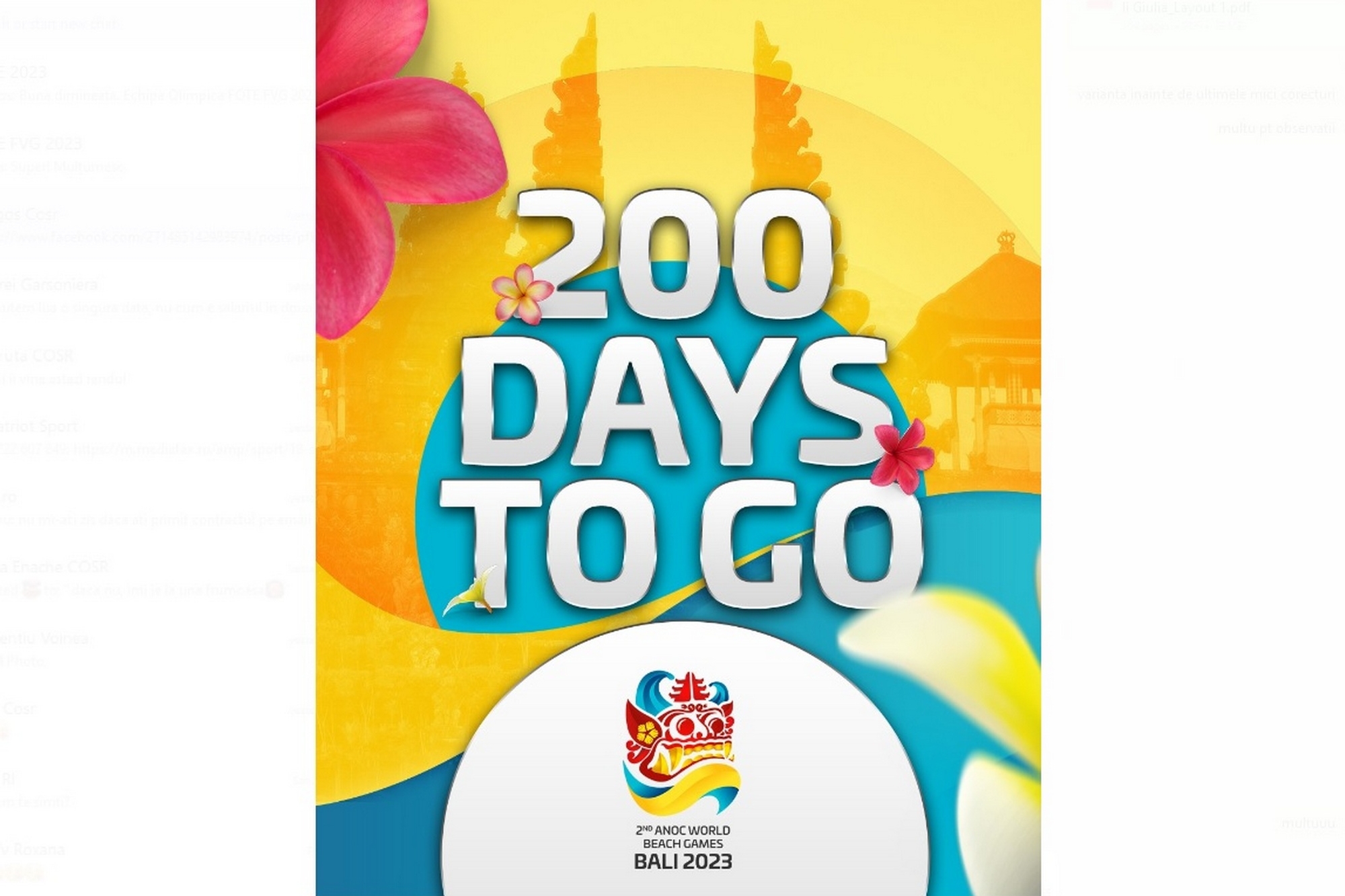 Peste 200 de zile, exotica destinație de vacanță Bali va fi gazda celei de a doua ediții a Jocurilor Mondiale pe Plajă, competiție organizată de Comitetul Național Olimpic Indonezia, sub egida Asociației Comitetelor Naționale Olimpice.