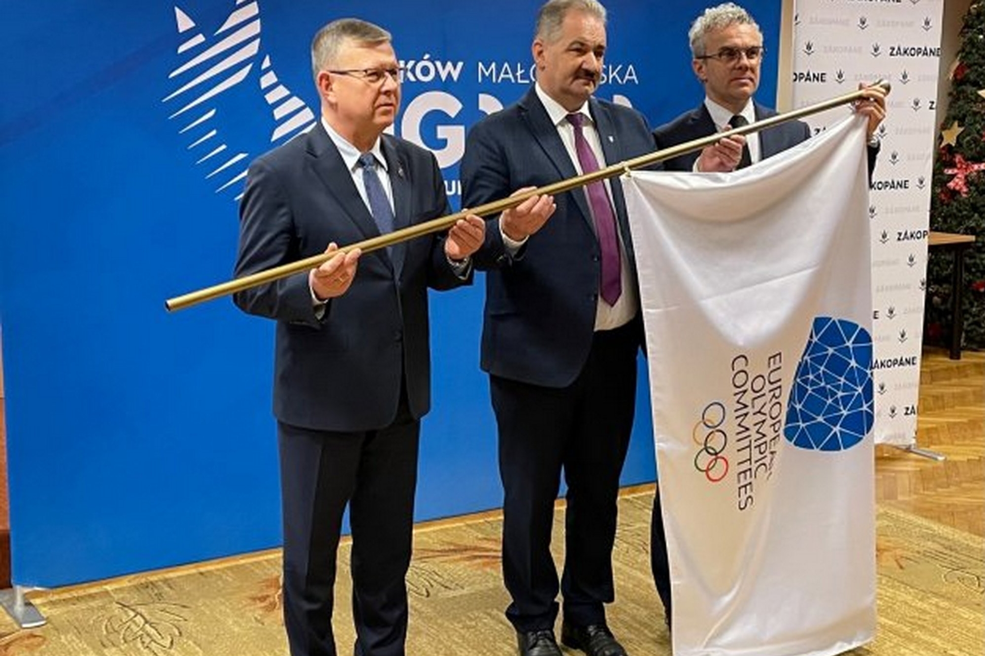 Nowy Targ, Zakopane și Nowy Sącz, orașe partenere cu Cracovia și Małopolska în găzduirea Jocurilor Europene din acastă vară, au primit câte un steag oficial al competiției de la președintele Comitetului de Organizare Marcin Nowak.