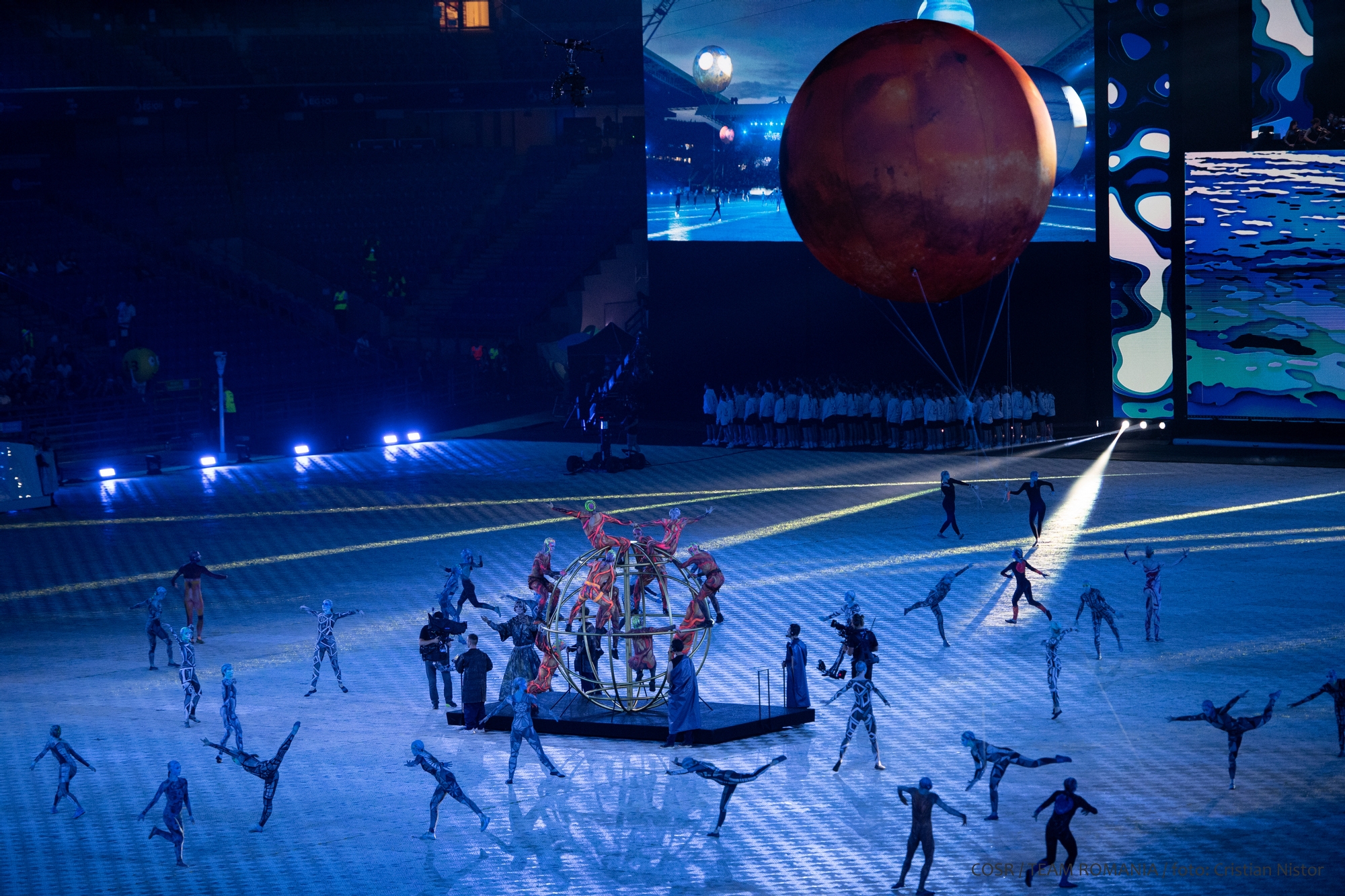După defilarea tuturor celor 48 de delegații printre care și România condusă de purtătorii de drapel Bianca Ghelber și Cătălin Chirilă, a avut loc un spectacol grandios.