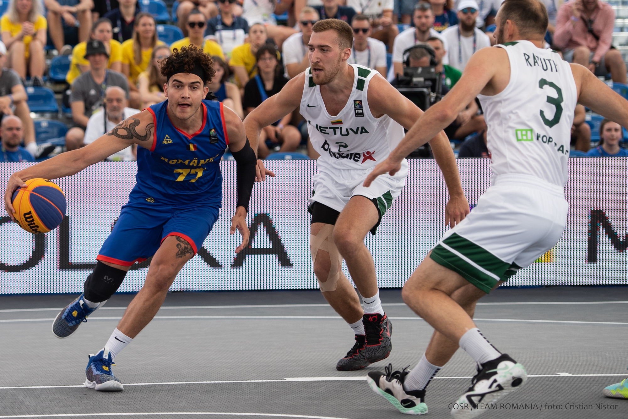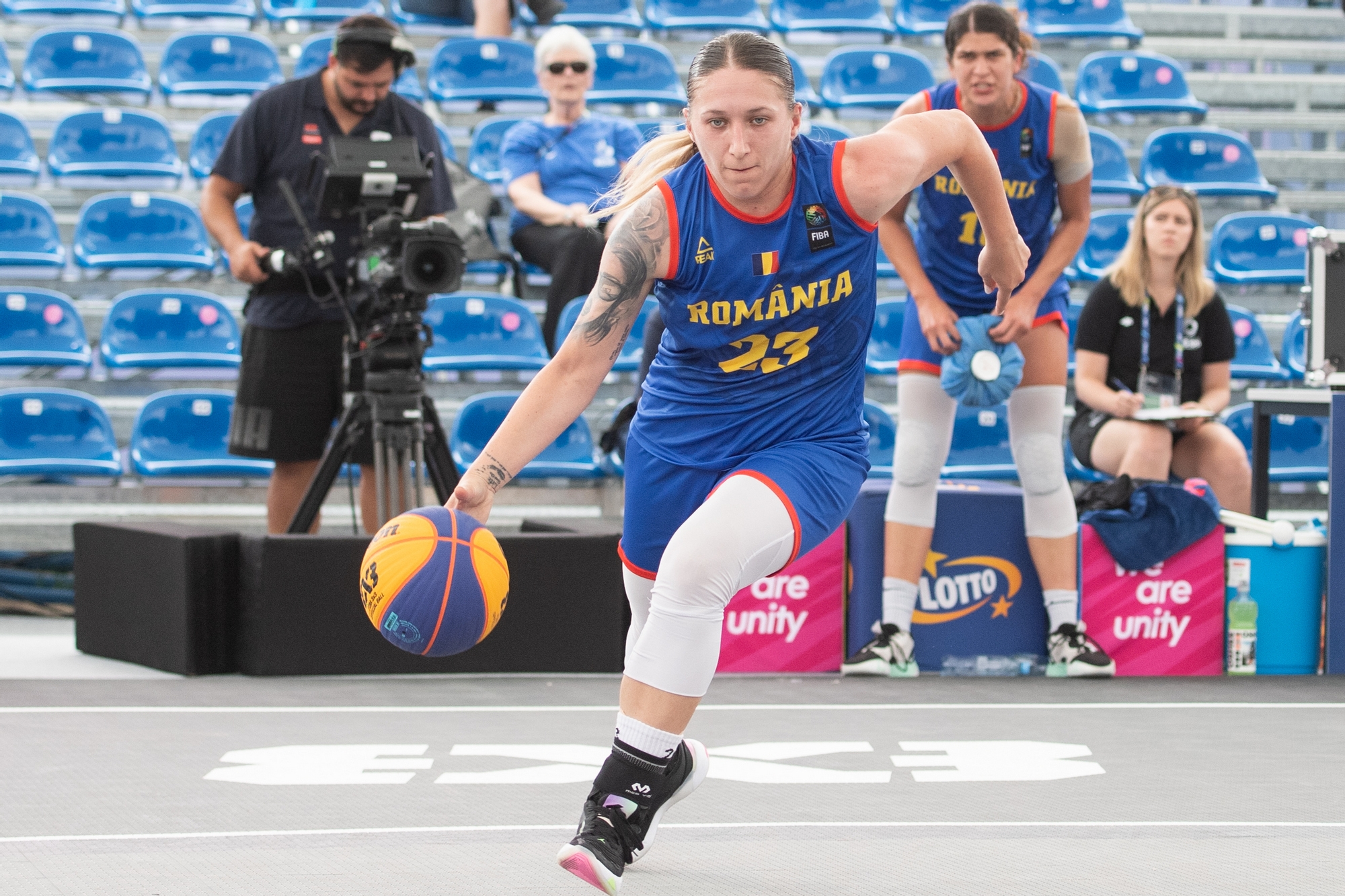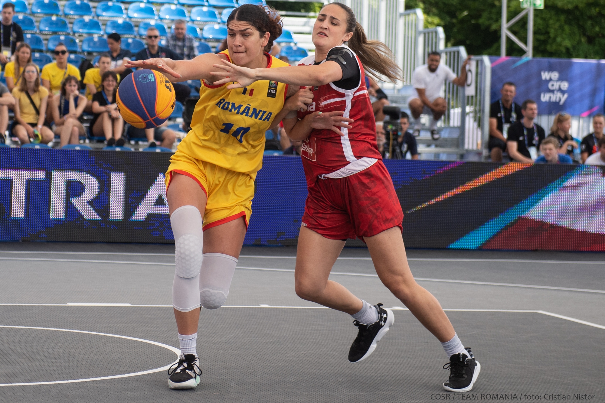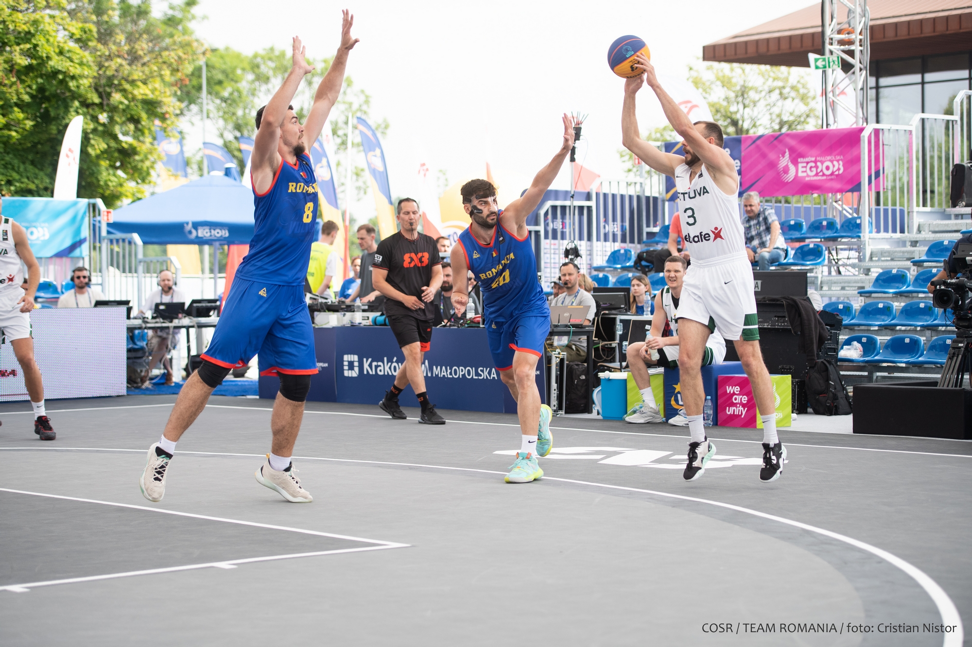 Echipa feminină de baschet 3x3 a României a debutat cu două victorii importante în Grupa B la Jocurile Europene din Polonia. Susținute din tribune de George Boroi, secretarul general la COSR, Carmen Tocală, președintele FR Baschet și colegi din Echipa Olimpică, Teodora Manea , Sonia Kim (ex. Ursu), Alina Maria Podar și Anamaria Vîrjoghe au jucat excelent, impresionând prin determinarea cu care au abordat fiecare partidă. În urma reușitelor de astăzi, tricolorele au preluat șefia grupei și și-au asigurat un loc în sferturile de finală.
