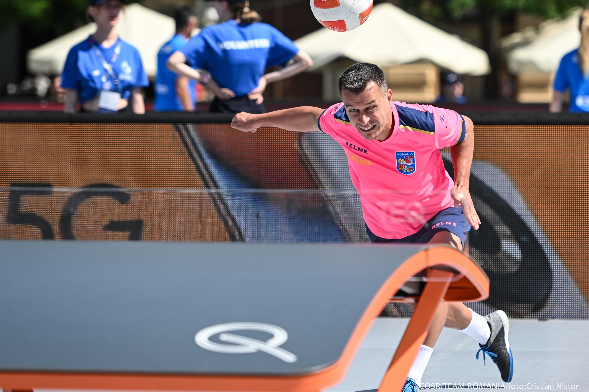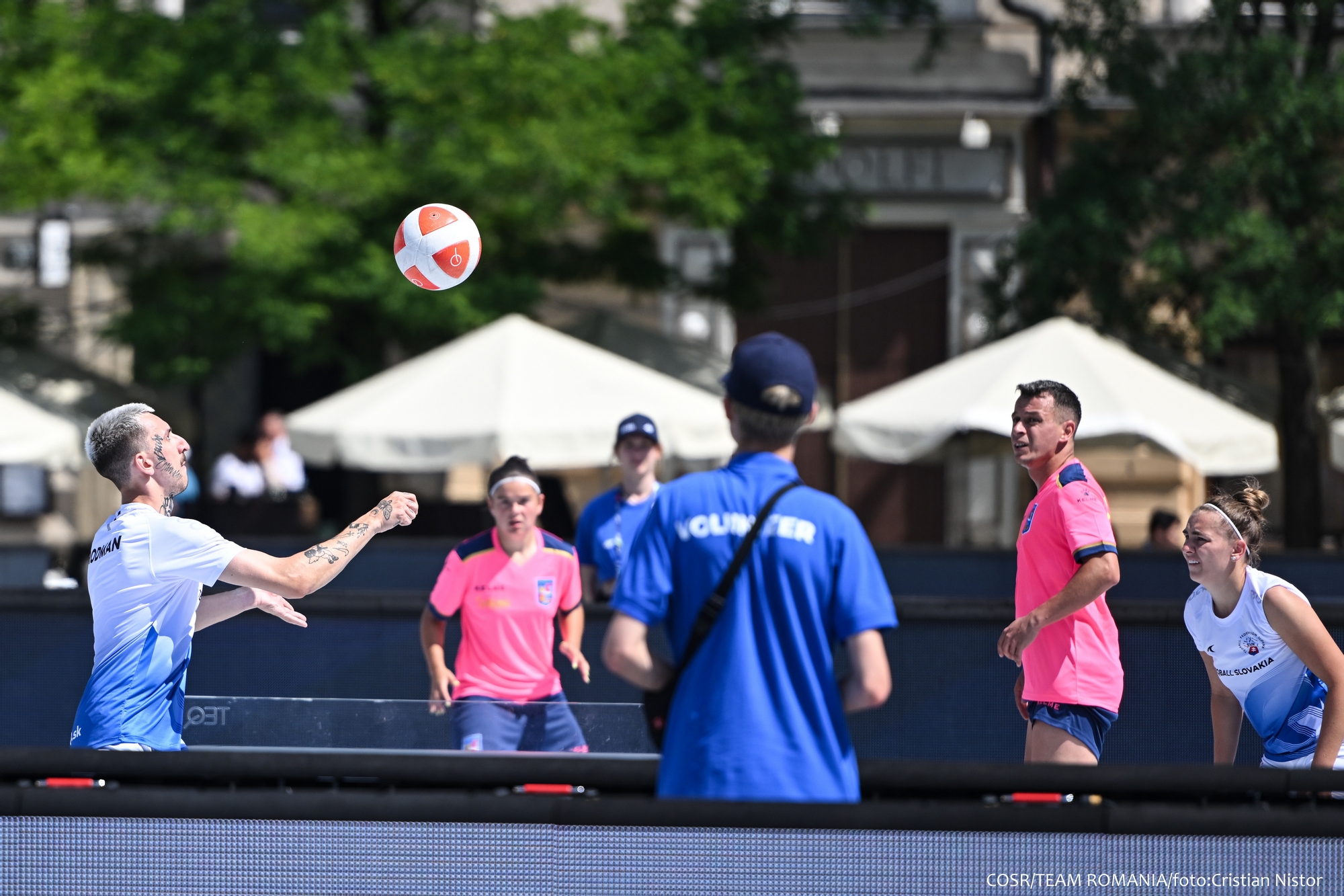 La teqball, echipa de dublu mixt nu a trecut de faza grupelor, dar mâine tandemurile de dublu feminin și masculin se vor bate pentru un loc pe podium.