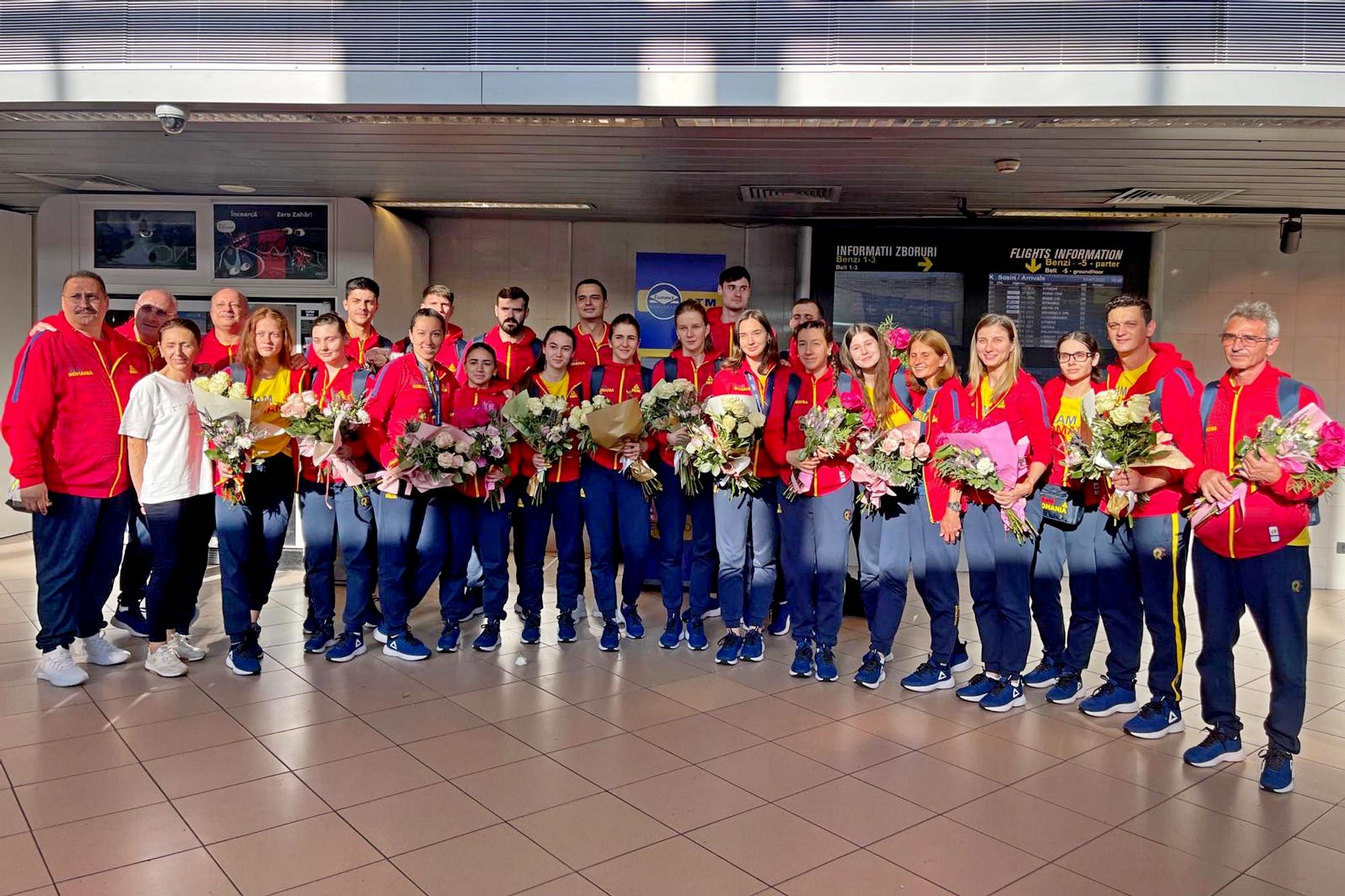 Componenții TEAM ROMANIA au fost întâmpinați cu flori la revenirea în țară de membri ai staff-ului Comitetului Olimpic și Sportiv Român.