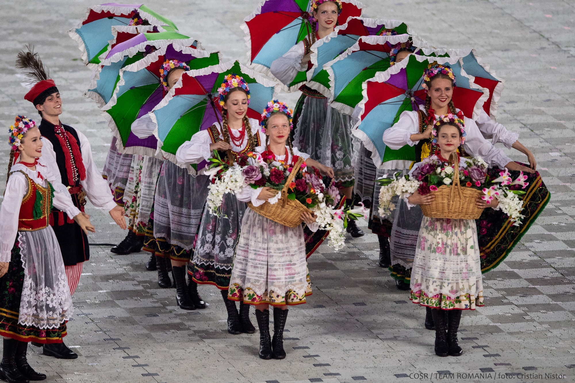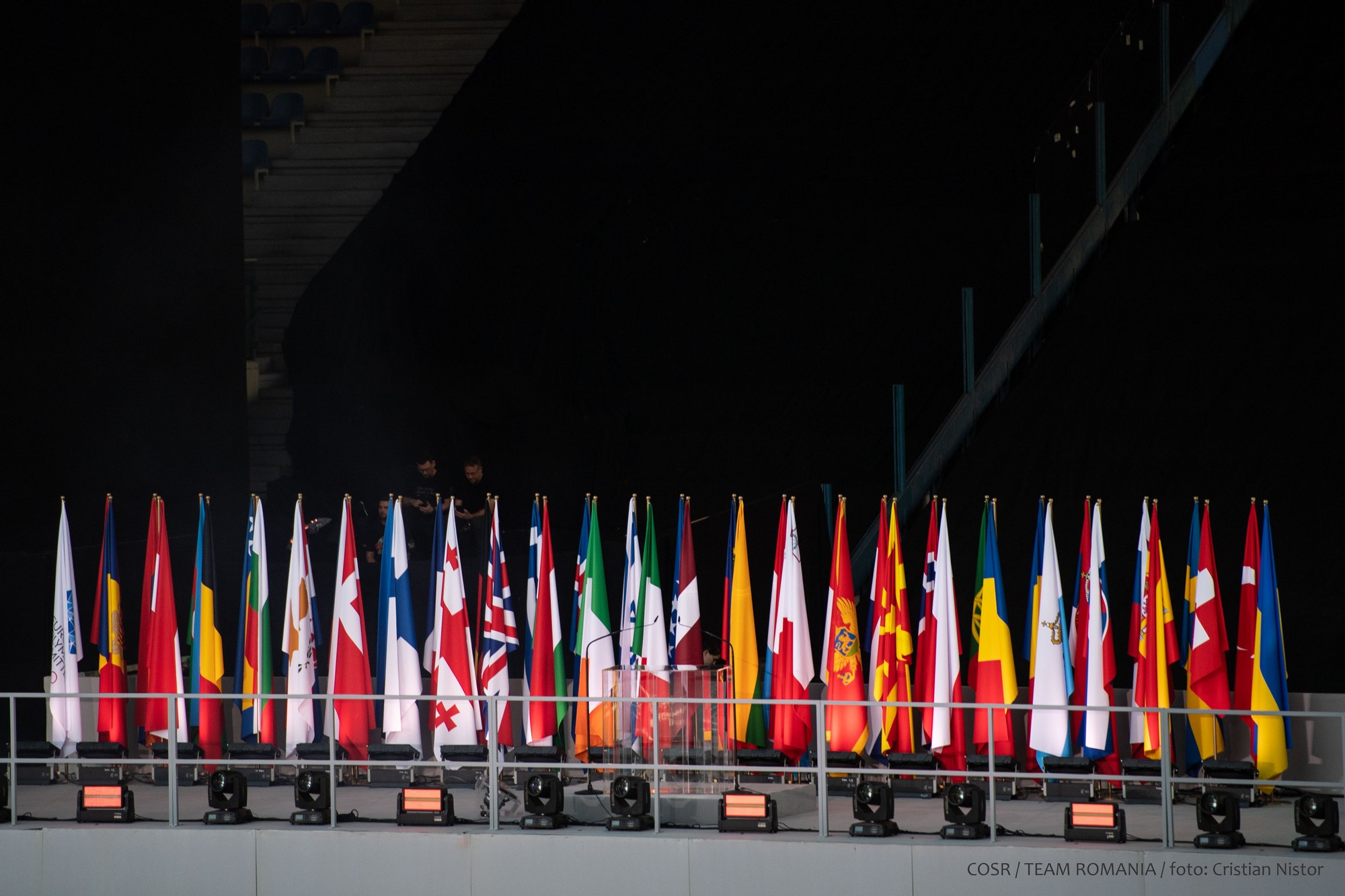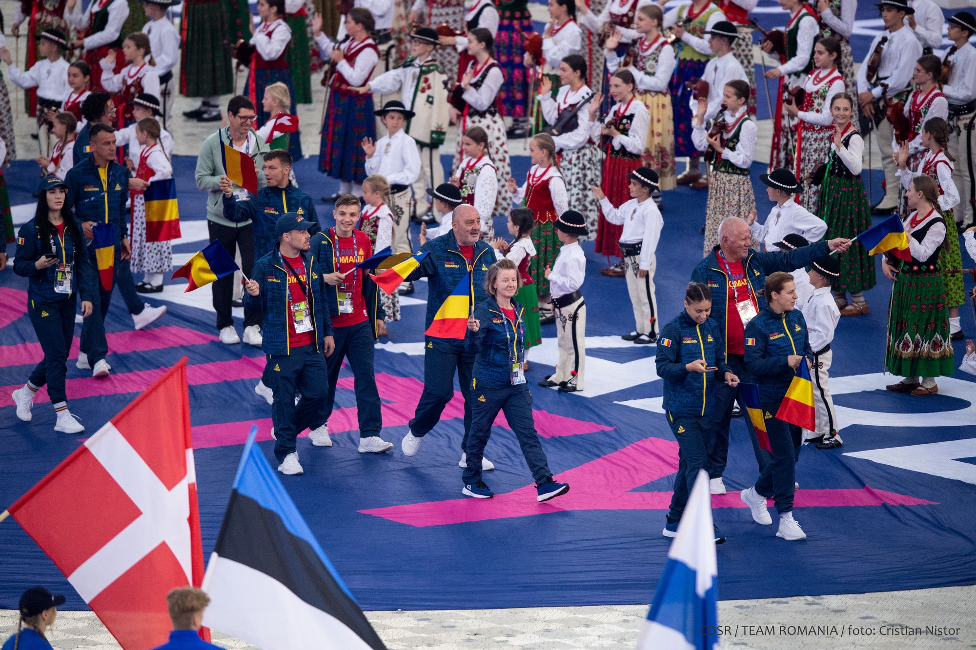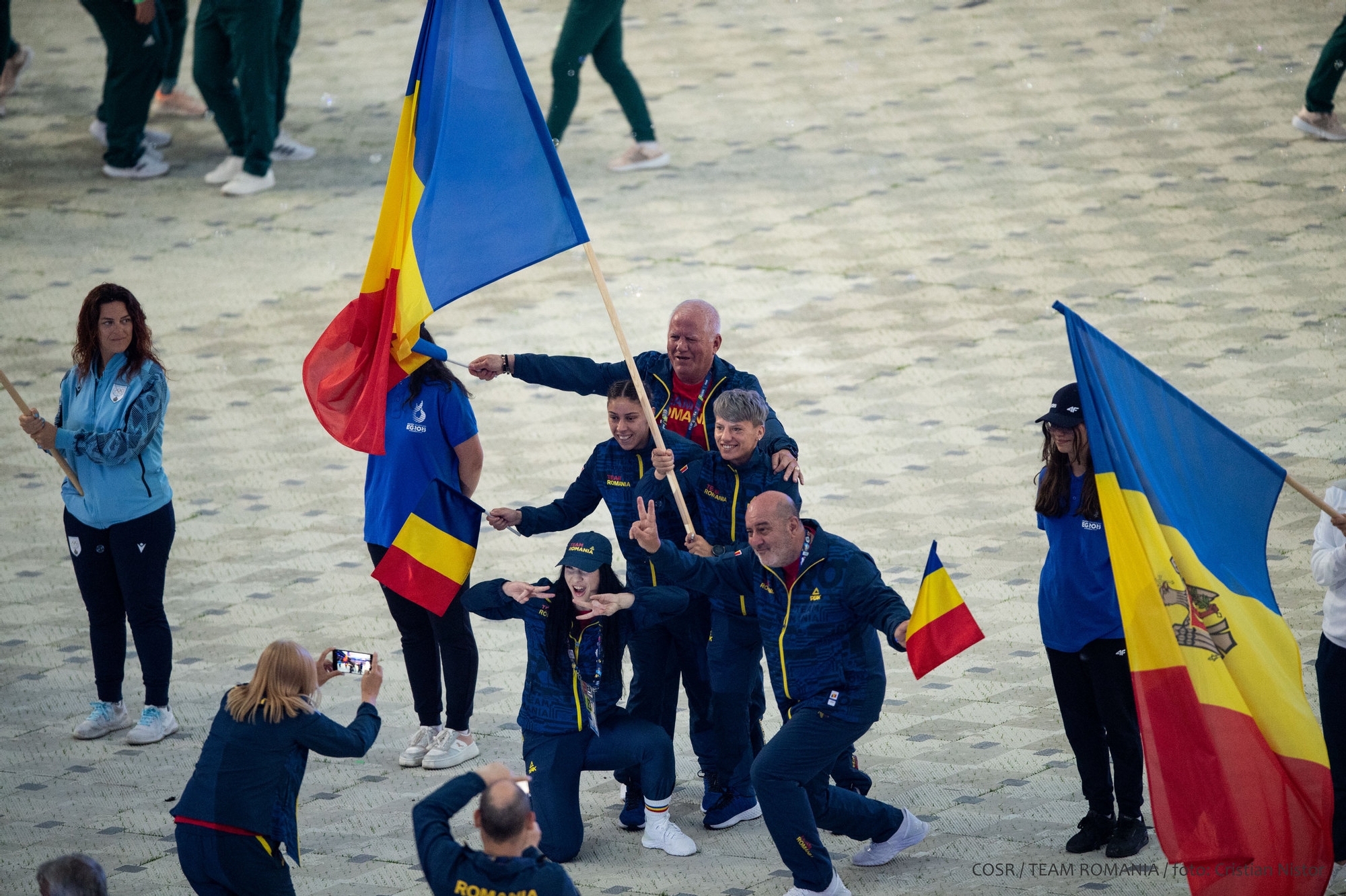 Mica delegație care a reprezentat ROMÂNIA la festivitate a fluturat stegulețele tricolore și a salutat publicul care timp de 12 zile a susținut și a aplaudat din tribune performanțele sportive.