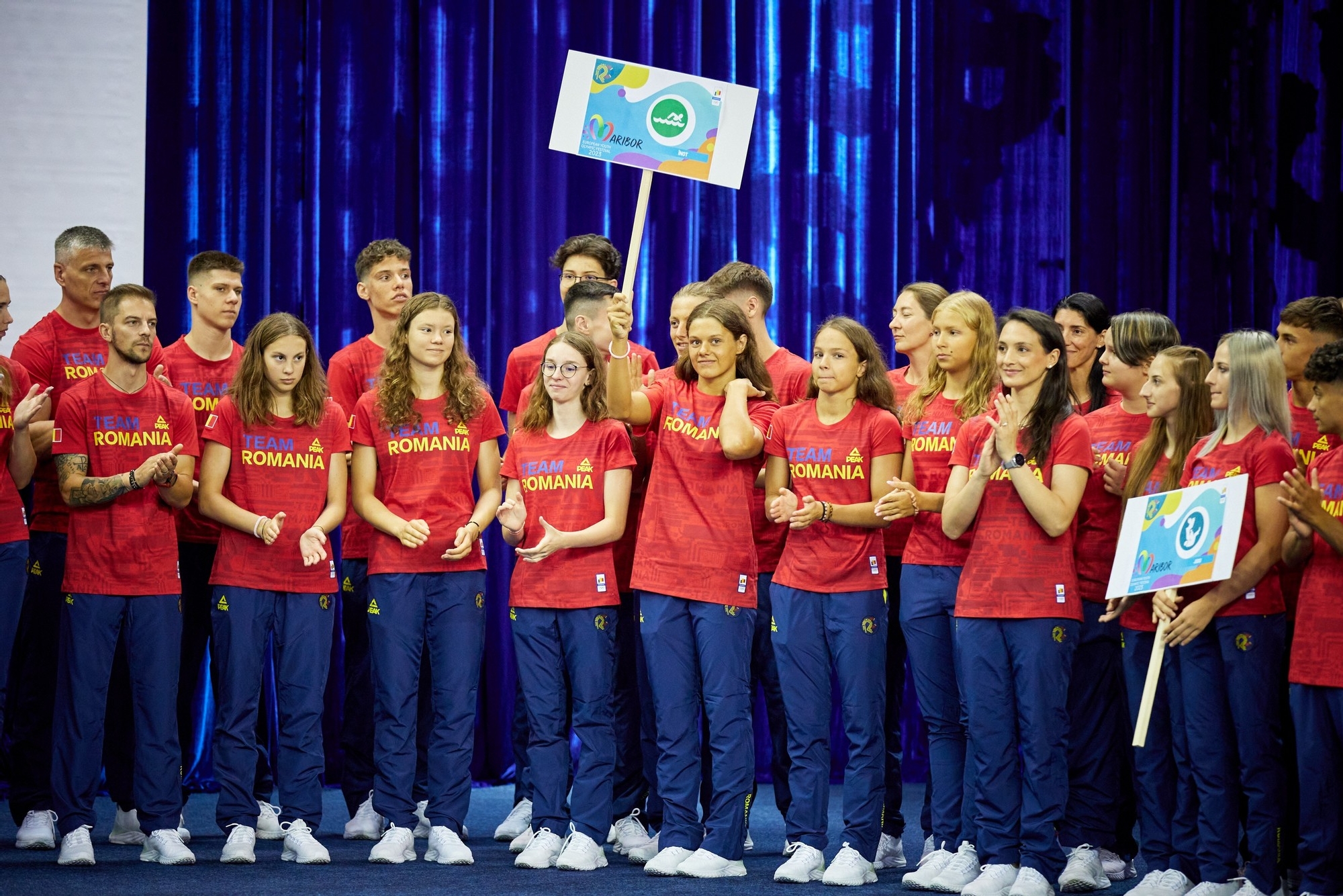 Atletul Mihai Motorca, cel care alături de gimnasta Alexia Vânoagă va purta drapelul României la Ceremonia de deschidere a FOTE Maribor 2023, a rostit jurământul sportivilor, iar antrenoarea de înot Iulia Becheru, pe cel al tehnicienilor și arbitrilor.