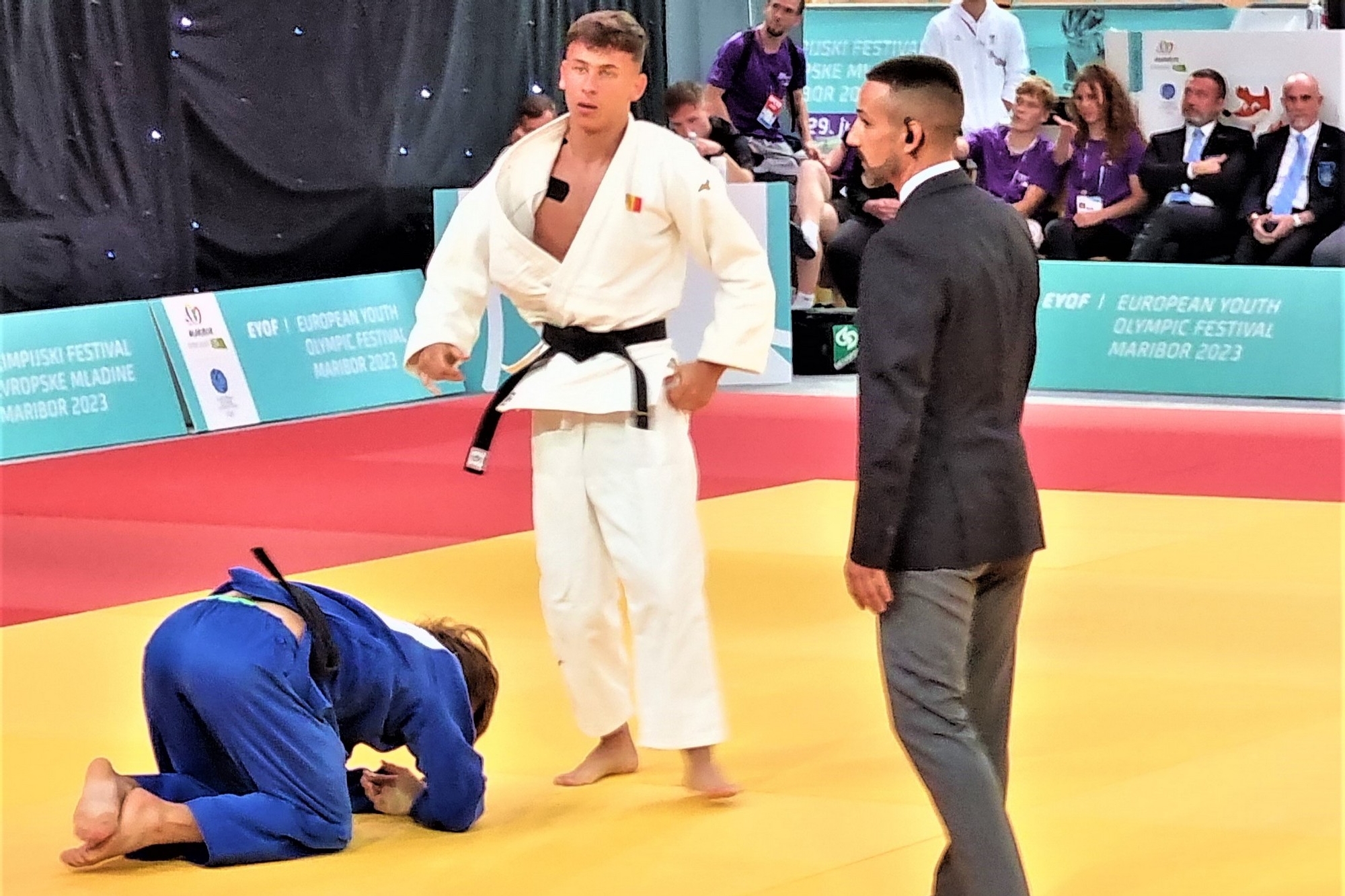 Imnul României a răsunat în sala Tabor din Maribor pentru Tudor Moșoi care a cucerit prima medalie de AUR la judo pentru România la FOTE Maribor 2023. La capătul unui parcurs spectaculos în competiția din limitele categoriei 60 kg, Tudor Moșoi și-a văzut eforturile răsplătite cu cea mai strălucitoare medalie.!