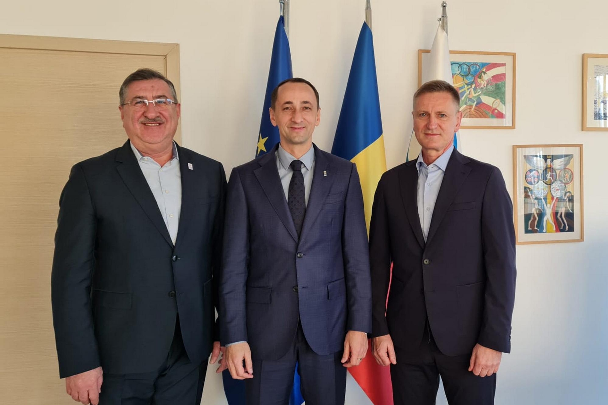La Casa Olimpică din București, președintele COSR Mihai Covaliu și George Boroi, secretarul general al COSR, s-au întâlnit astăzi cu Luca Teodor, președintele Federației Române de Teqball.