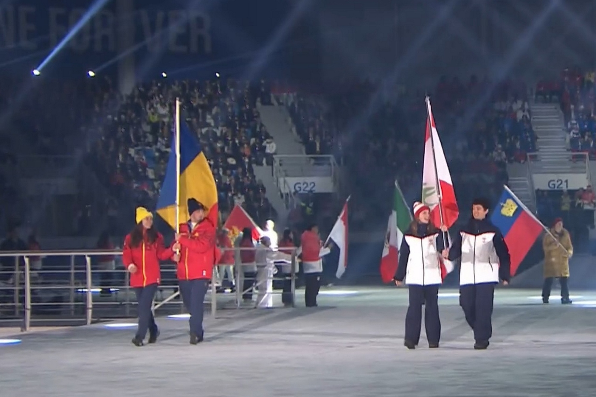 Sportivii TEAM ROMANIA au savurat fiecare moment, intrarea lor pe gheața patinoarului fiind aplaudată de miile de suporteri entuziaști care au umplut până la refuz tribunele, de Octavian Morariu, membru CIO pentru România, și Mihai Covaliu, președintele Comitetului Olimpic și Sportiv Român.