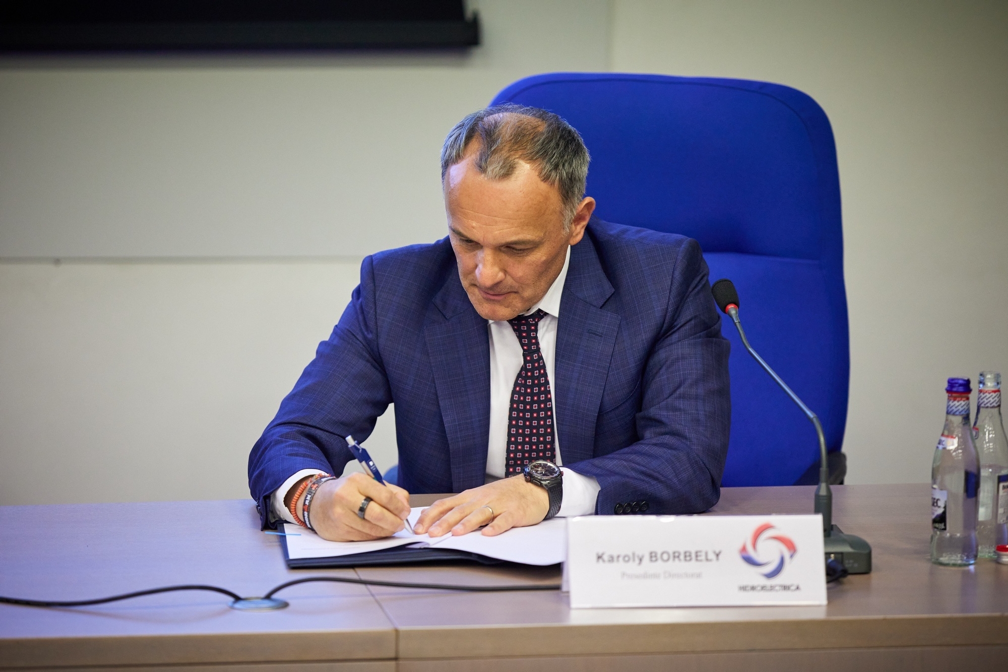 Mihai Covaliu, the president of COSR, and Karoly Borbely, the president of Hidroelectrica's board, signed the sponsorship contract, which spans a period of 10 months. The moment was marked by the presentation of the Team Romania jersey to the new partner. Karoly Borbely received the Olympic Team jersey from European table tennis champion Bernadette Szocs.