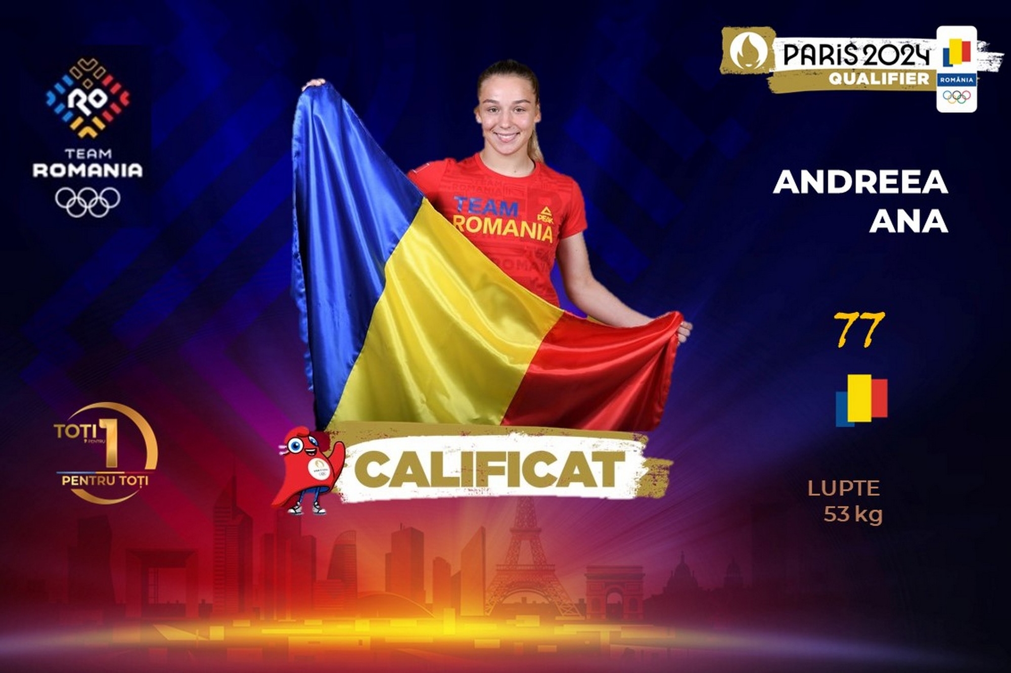 Andreea este prima reprezentantă a luptelor românești care s-a calificat la JO Paris 2024. Pentru ea este a doua ediție de Jocuri, după Tokyo 2020.