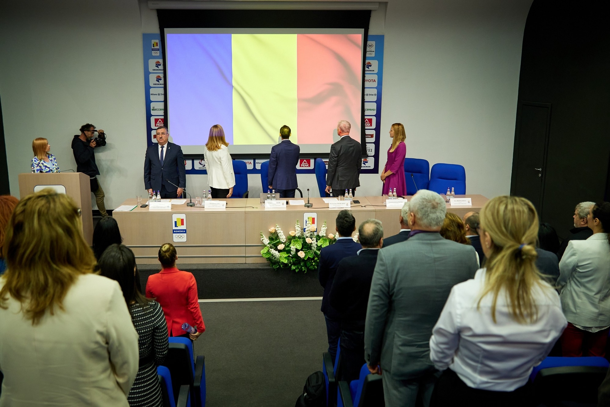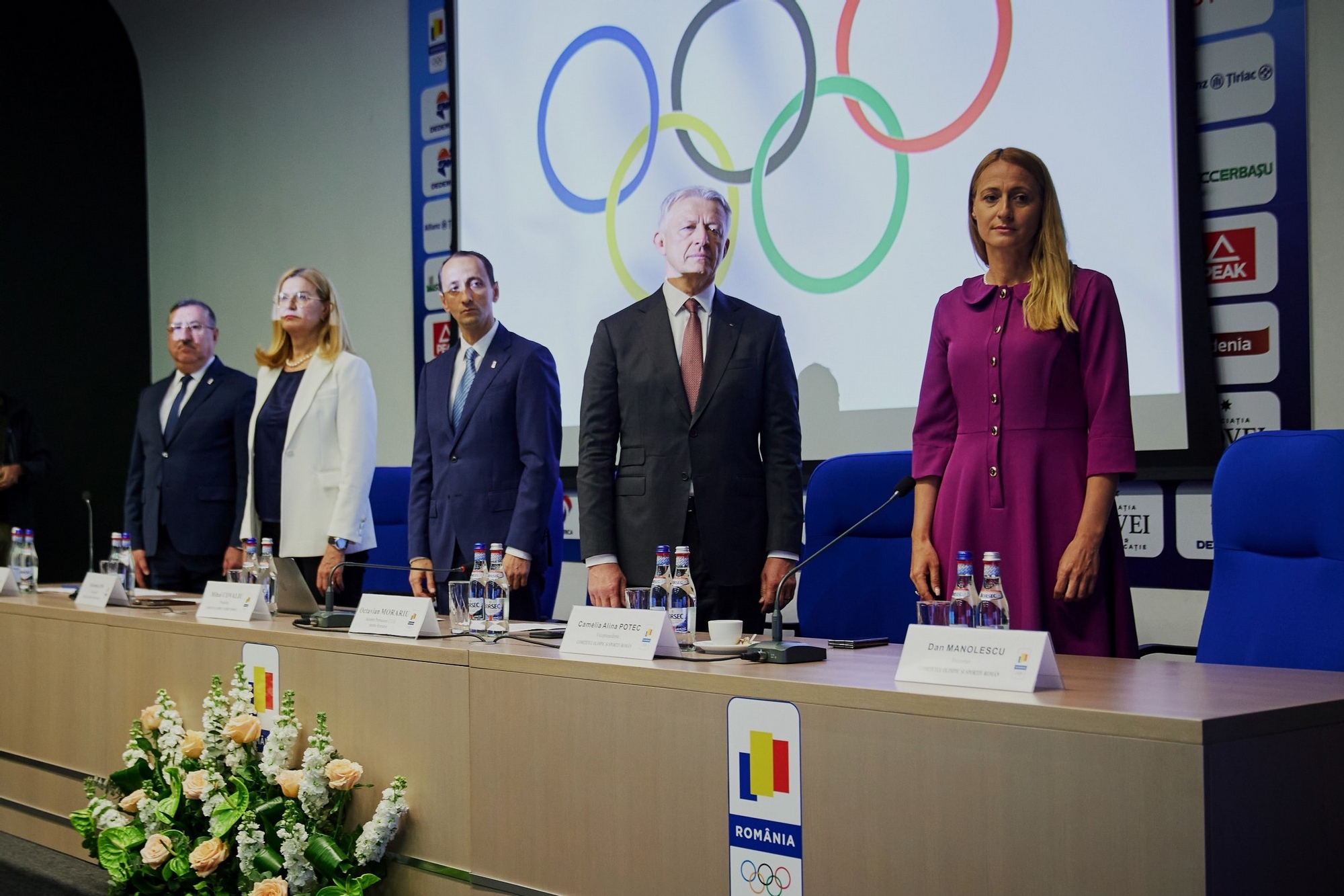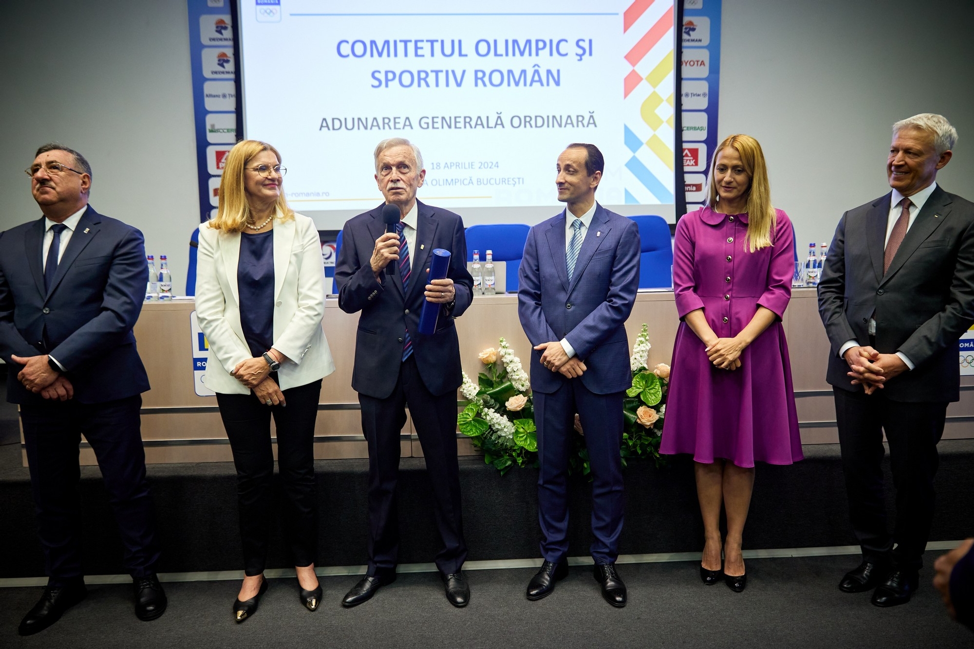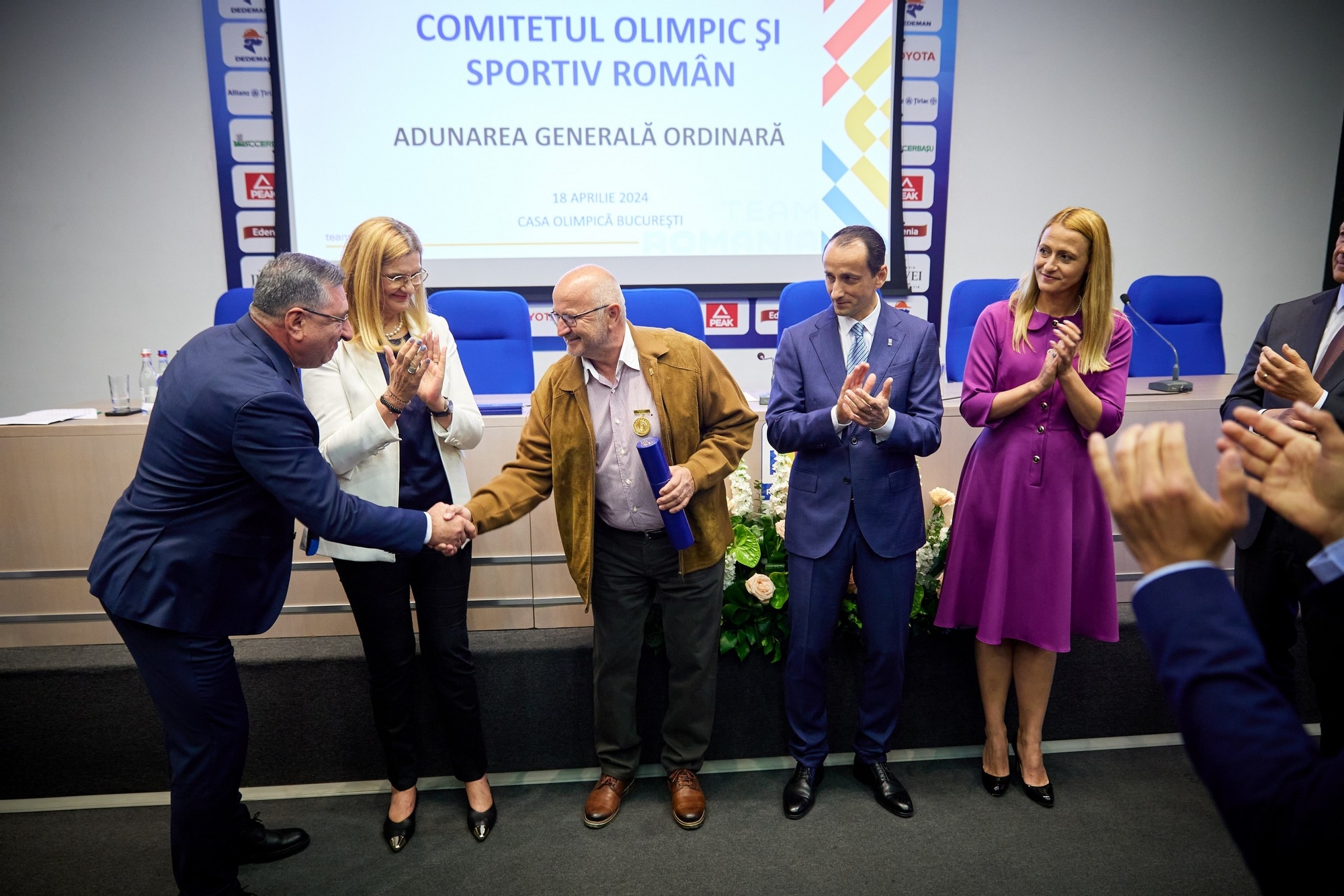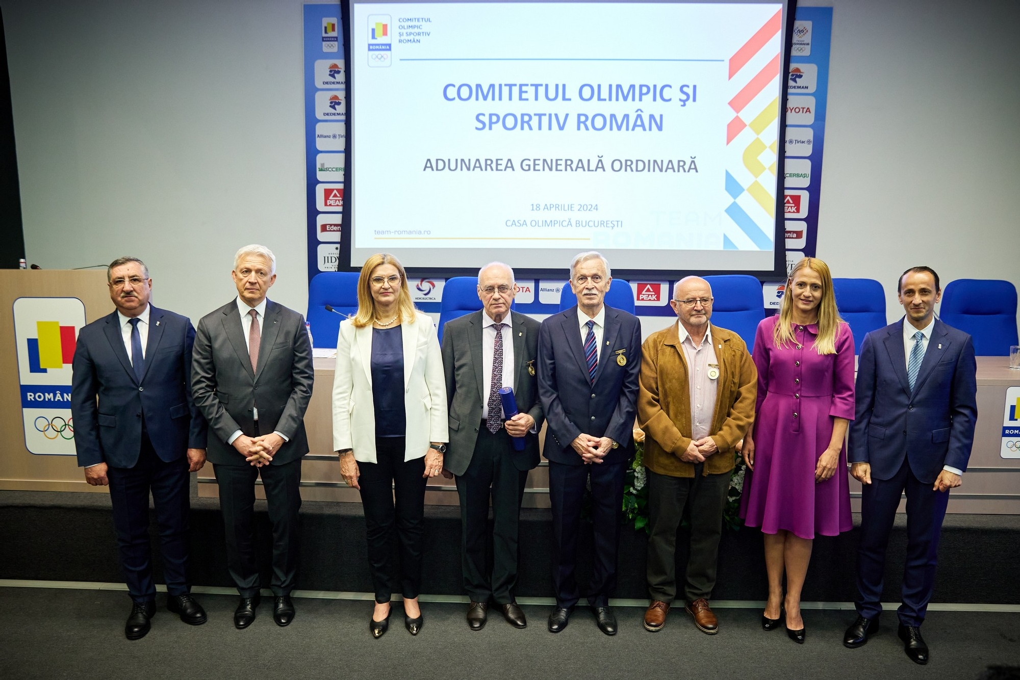 The Ordinary General Assembly of the Romanian Olympic and Sports Committee (ROSC) took place today at the Olympic House in Bucharest, with 77 out of the 120 members present. At the beginning of the session, after the playing of the anthems of Romania and the Olympics, amidst enthusiastic applause from those present, Arthur Hoffmann, Ovidiu Gârbacea, and Filip Stoica, three prominent figures in the Romanian Olympic Movement, were awarded the Olympic Excellence Order for their outstanding merits in Romanian sports.