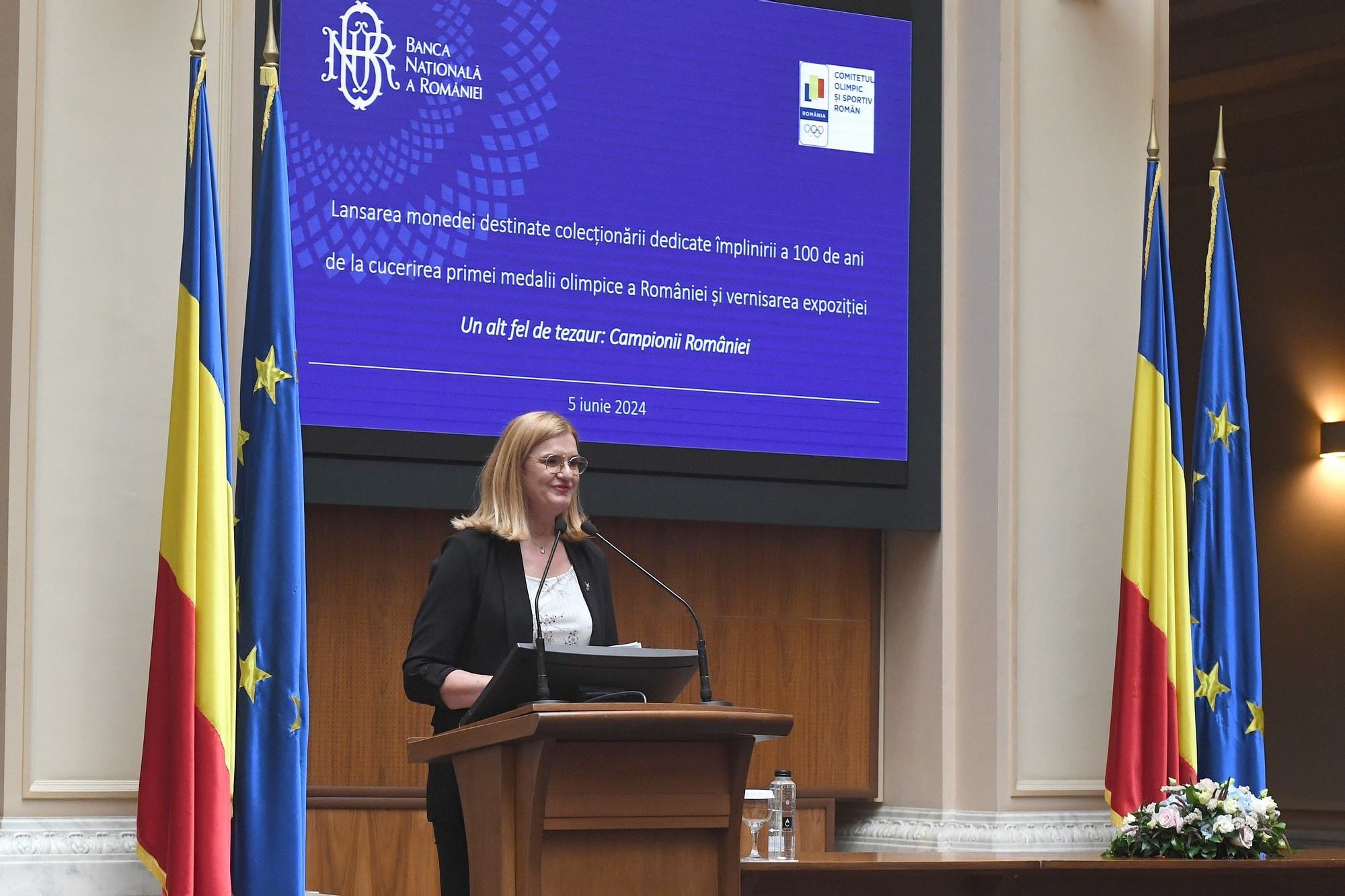 Elisabeta Lipă, President of the National Sports Agency: "I am trembling with emotion. It is the first time in history that so many Olympic medals have been gathered in one place. It is a unique moment." Because she could not be physically present at the event, Nadia Comăneci sent a video message applauding the initiative of the National Bank of Romania and COSR to create the commemorative coin. "The medals of Romanian athletes have immeasurable value. Each medal is a business card globally for our country, the most important ambassador of Romania in every corner of the world. I hope that this year's Olympic Games in Paris, marking 100 years since the first medal, will bring Romania a number of medals that will make us proud to be Romanians."