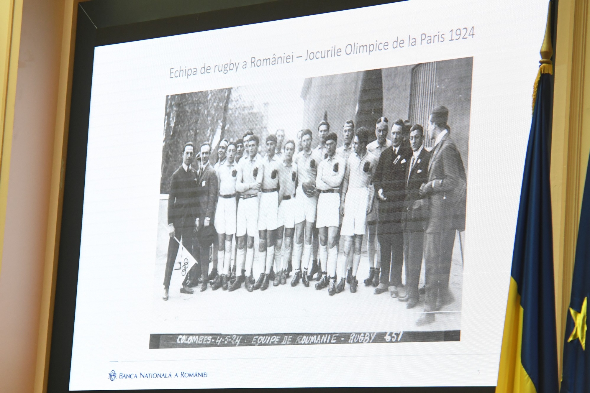 Momente emoționante astăzi la Banca Națională a României. Alături de zeci de medaliați și campioni olimpici și alte personalități ale sportului românesc, reprezentanți ai Comitetului Olimpic și Sportiv Român, ai Băncii Naționale a României, ai Agenției Naționale pentru Sport, ai Administrației Prezidențiale, Senatului României, Camerei Deputaților, Guvernului României, Casei Regale a României și ai Asociației Comitetelor Olimpice Europene (EOC) au fost prezenți la vernisarea expoziției ”Un alt fel de tezaur. Campionii României” și lansarea monedei aniversare dedicate împlinirii a 100 de ani de la cucerirea primei medalii olimpice din istoria sportului românesc – BRONZ, echipa de rugby a României, la Jocurile Olimpice de la Paris, în 1924.
