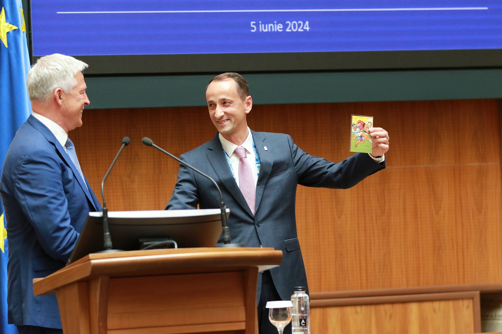 Spyros Capralos, President of EOC: "It is touching to be in Bucharest this year when the Olympic Movement in Romania marks the centenary of its first medal at the Olympic Games. Since then, Romania has produced a long and impressive list of Olympic champions who have contributed to inspiring generations and transforming it into a country that is deeply involved in sports." The leader of the Olympic Movement in Romania was happy to be among Romania's champions and to shake hands with former canoeist Leon Rotman, the first double Olympic champion in the history of Romanian sports, who will turn 90 in a month.