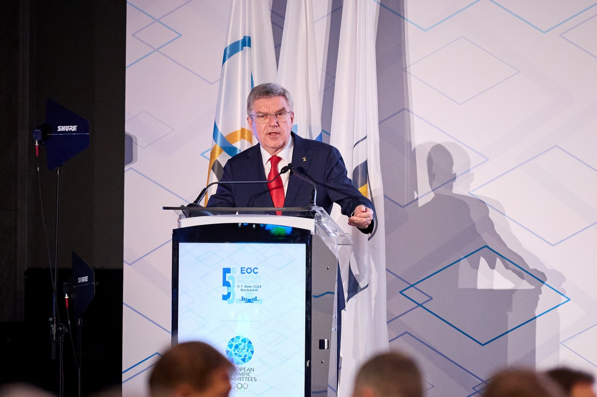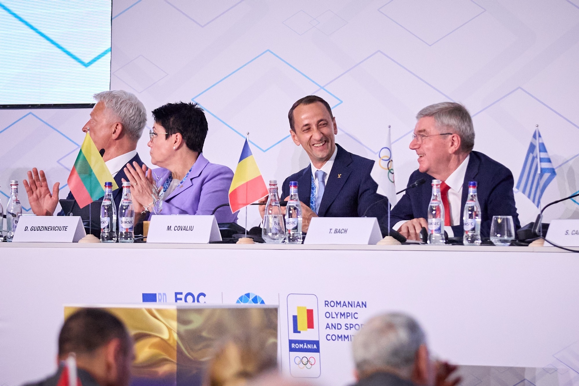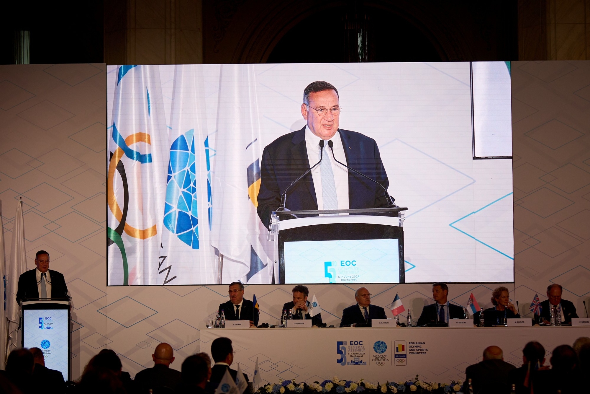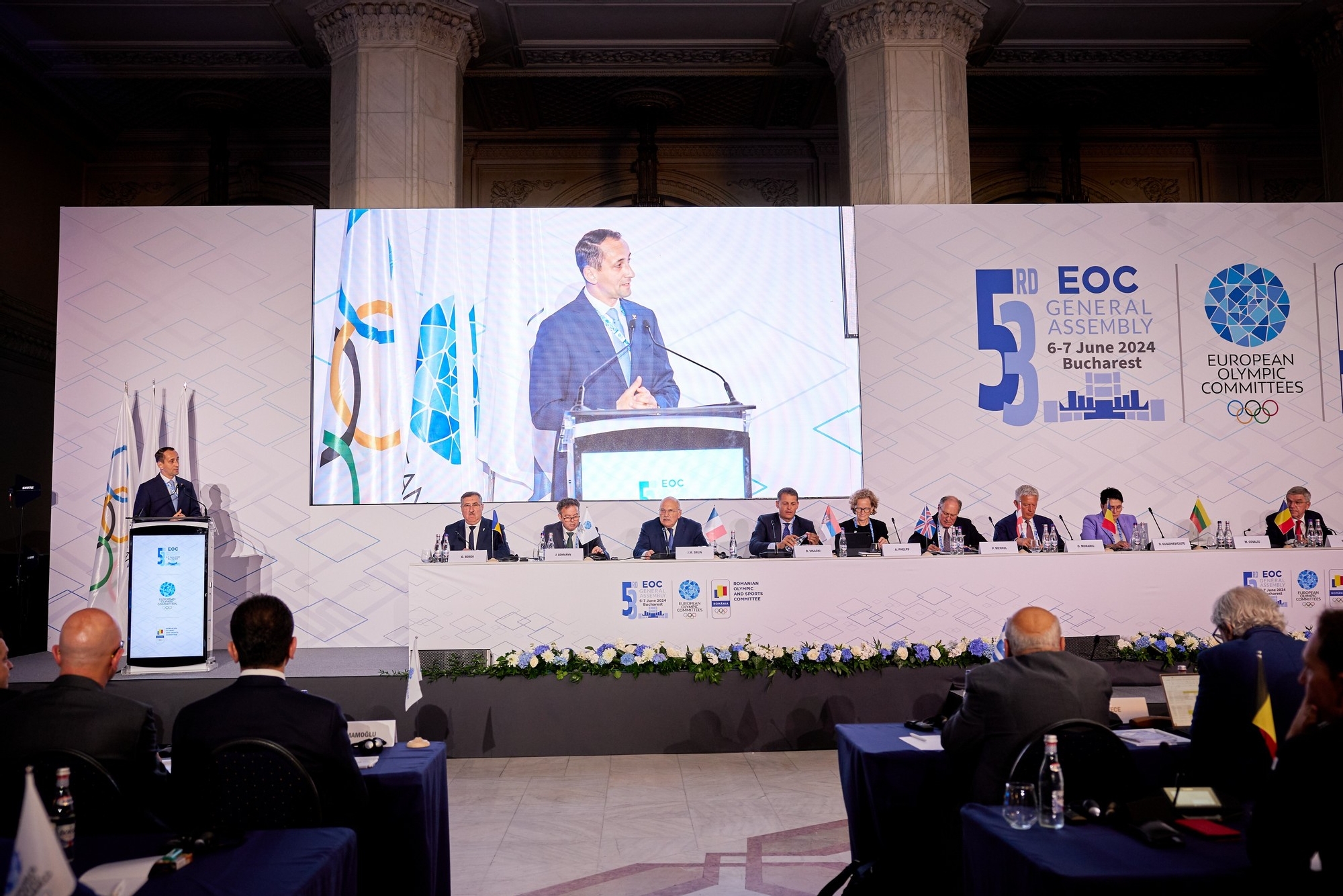 ” România este un membru important al familiei noastre olimpice europene și suntem privilegiați să organizăm Adunarea Generală în acest magnific Palat al Parlamentului. Comitetele Olimpice Europene au experimentat pasiunea poporului român pentru sport la Festivalul Olimpic al Tineretului European de Iarnă de la Brașov în 2013 și suntem foarte bucuroși să asistăm din nou la acest lucru la București săptămâna aceasta, precum și angajamentul de a organiza EYOF 2027 la Brașov. România are o istorie mândră și profundă de succes olimpic.