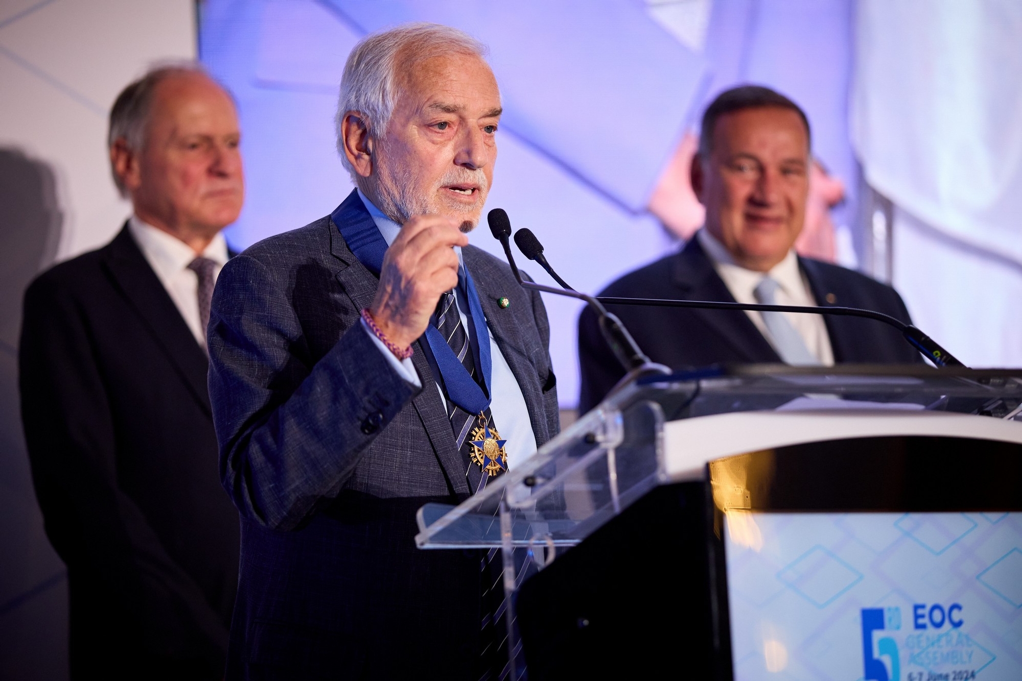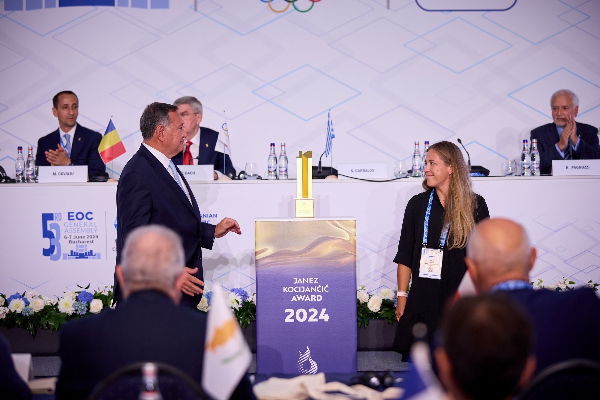 Prima parte a Adunării Generale a fost marcată de două momente emoționante. Raffaele Pagnozzi, secretarul general al EOC, a fost decorat cu Ordinul de Merit al EOC, pentru întreaga activitate în aplauzele furtunoase ale celor prezenți, iar Sypros Capralos a dezvăluit trofeul Janez Kocijančič - creat în onoarea fostului președinte al EOC. Premiul Janez Kocijanči va fi acordat pentru prima dată celor mai valoroși sportivi din întrecerile feminine și masculine din cadrul Jocurilor Europene Cracovia Malopolska 2023.