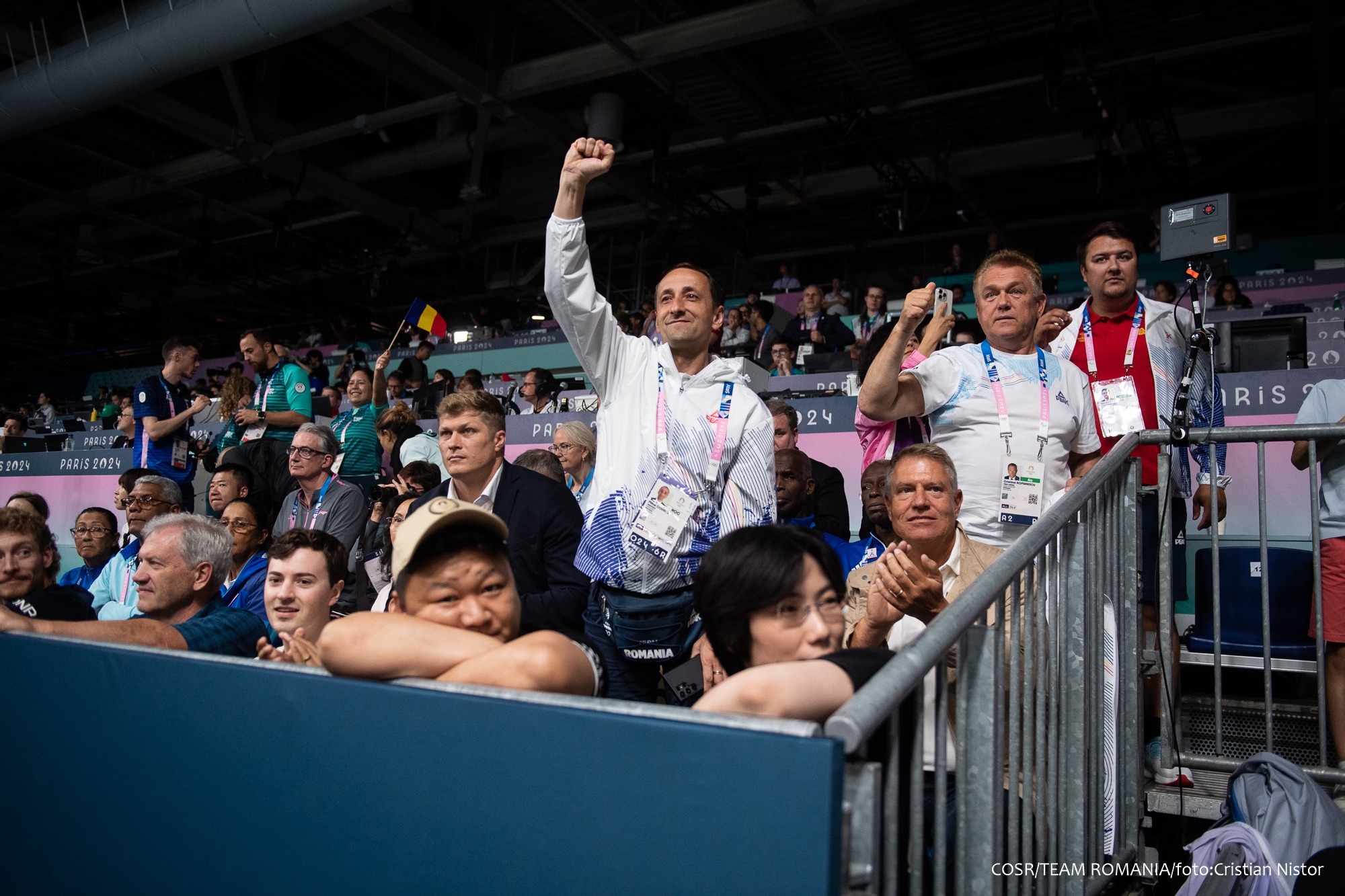 Jucătorii de tenis de masă români care au intrat în concurs în prima zi competițională a Jocurilor Olimpice Paris 2024 s-au bucurat de susținere de rang înalt. Klaus Ioahnnis, președintele României, alături de Mihai Covaliu președintele COSR și Ioana Bivolaru ambasadoarea României la Paris, a aplaudat în picioare din tribune frumoasa victorie repurtată la dublu mixt de