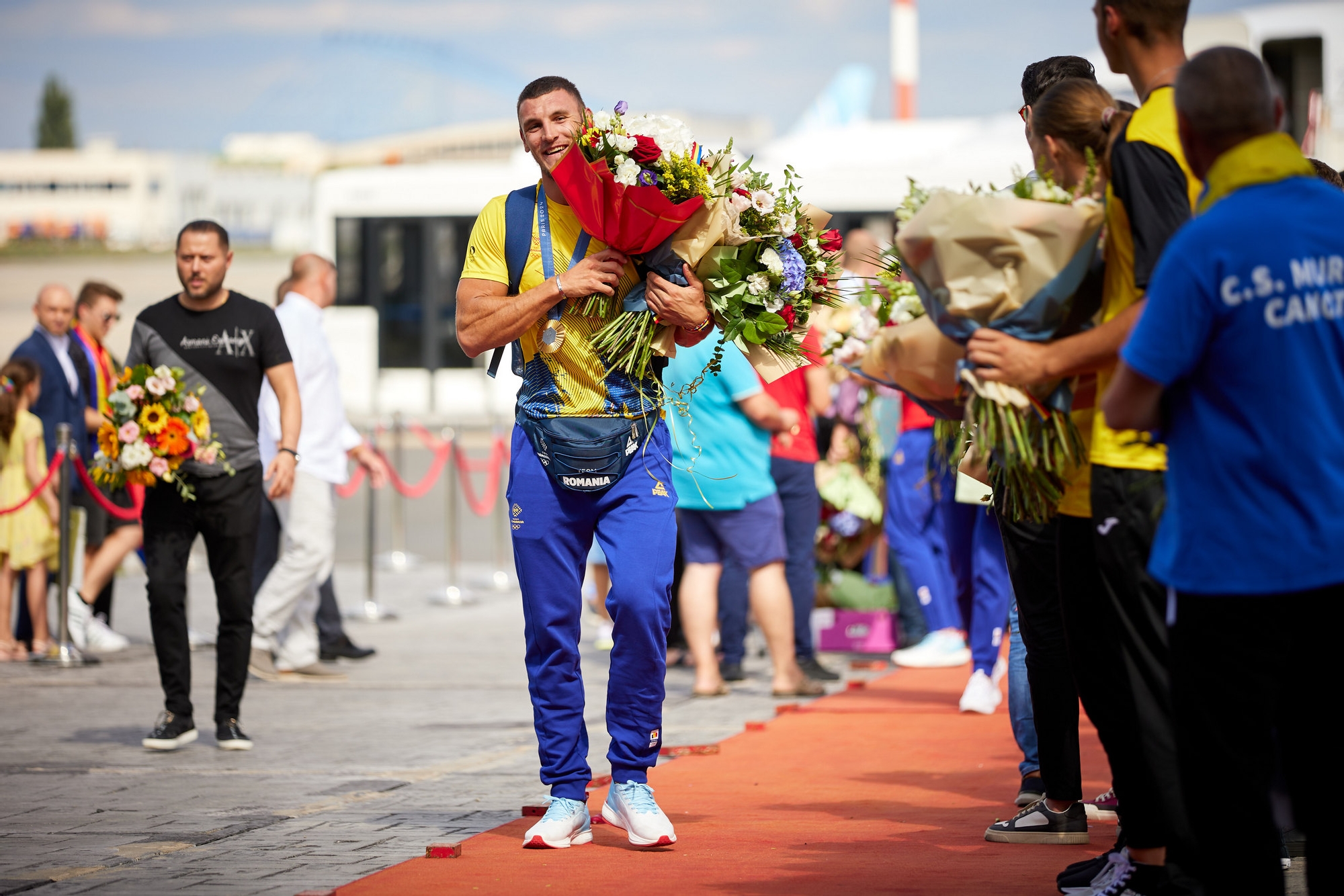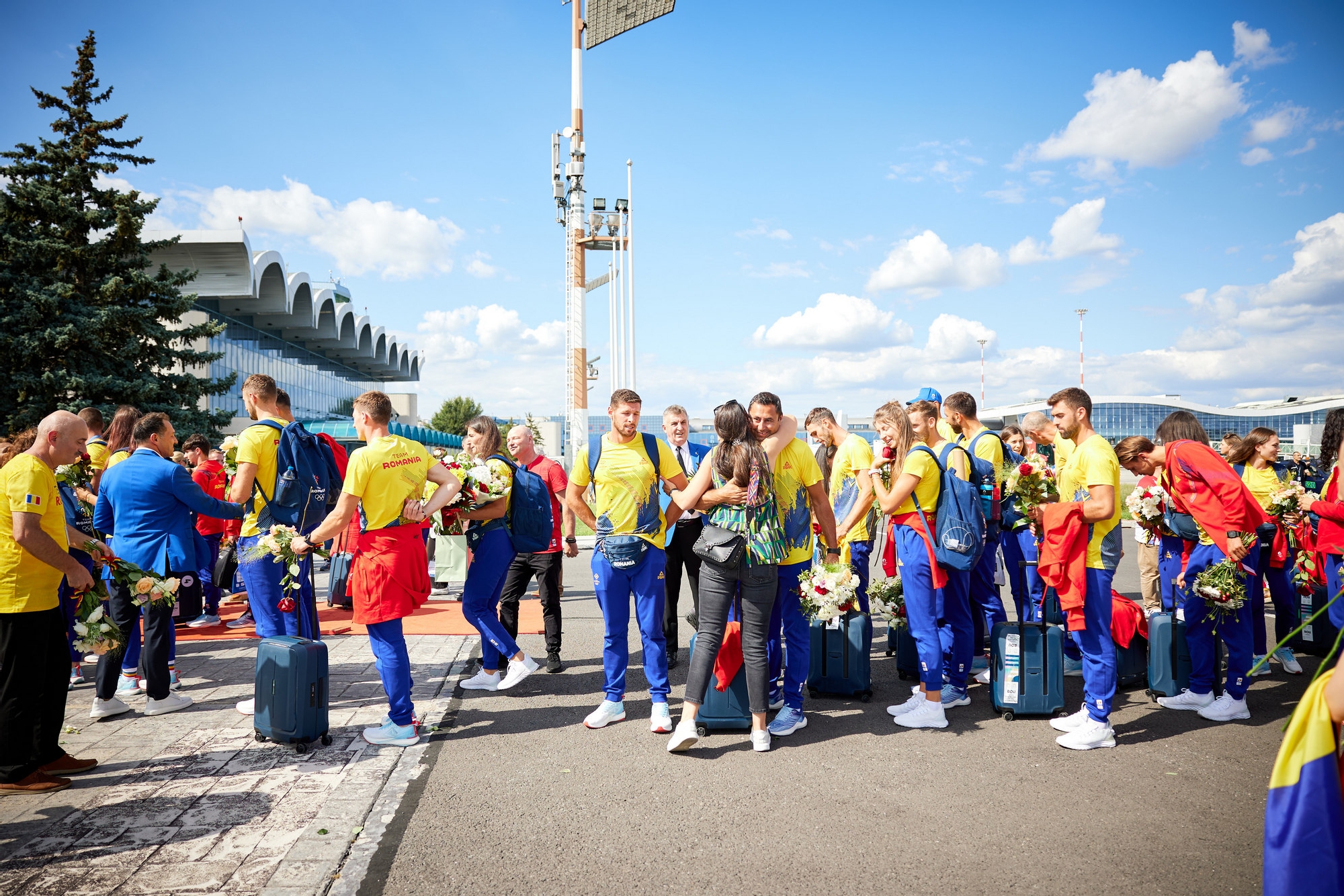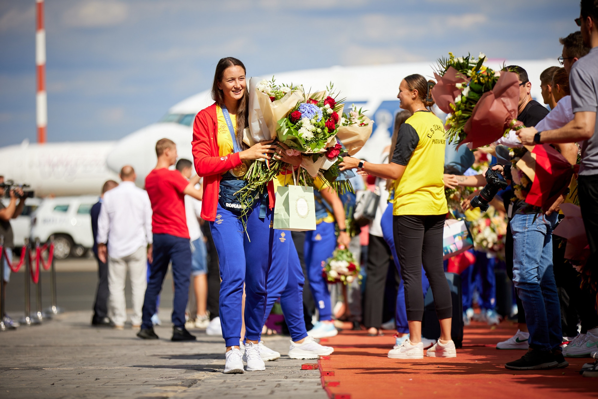 Reprezentanți ai Comitetului Olimpic și Sportiv Român, ai Agenției Naționale pentru Sport, ai federațiilor sportive și jurnaliști i-au primit pe sportivi cu zeci de buchete de flori.
